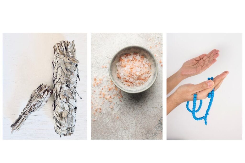 Smudging with sage or palo santo is a symbolic practice used across cultures. The value lies in moving slowly and intentionally through the space.